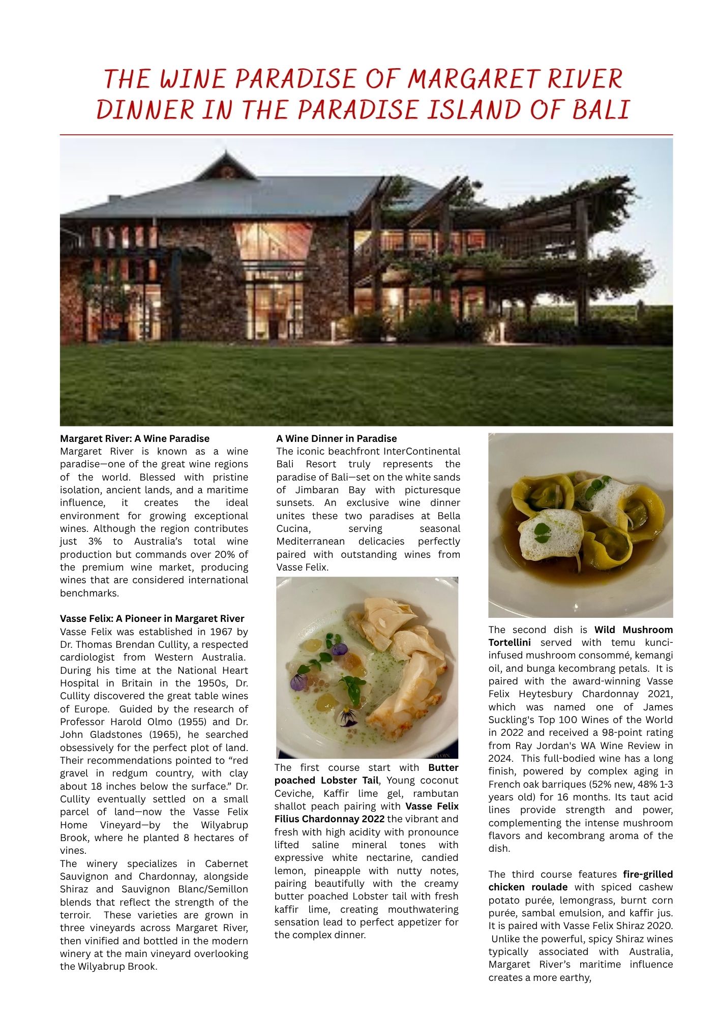 This wine dinner is a truly paradisiacal experience, where exceptional wines, thoughtfully crafted cuisine, and the idyllic ambiance of Bali come together in a flowing symphony of flavor and elegance.